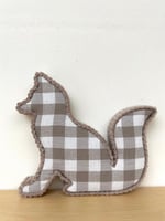 Personalised letter & fox set made with beautiful cotton beige check fabric – perfect baby shower & nursery gift.